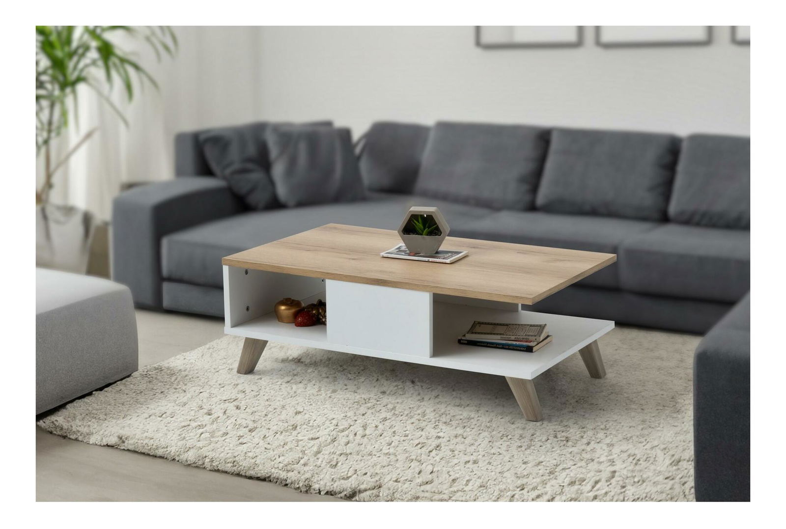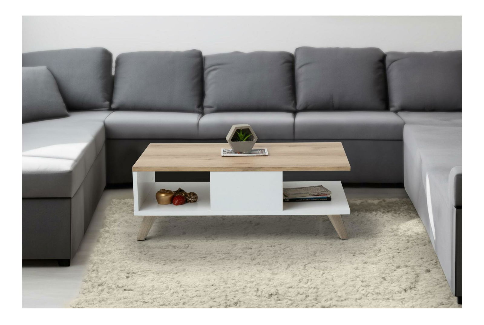 Konferenční stolek Sumy (dub + bílá) je stylový, moderní a praktický kus nábytku, který se hodí pro každý obývací pokoj nebo kancelář. Vysoký 35,6 cm, široký 90 cm a hluboký 54 cm, má tento stolek dostatek prostoru pro občerstvení, knihy, časopisy a dokonce i pro pohodlné nohy. Vyrobeno ze 100% melaminové desky, tato směs zaručuje pevnost, odolnost vůči poškrábání a snadnou údržbu. Kombinace odstínů dubu a bílých barev dodává stolku moderní, ale elegantní vzhled, který se hodí pro každý interiér. Konferenční stolek Sumy (dub + bílá) bude jistě skvělým doplňkem Vašeho obývacího prostoru.