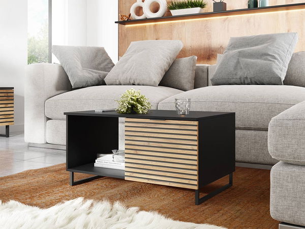 Konferenční stolek Surezina 100 je nezbytným kusem nábytku v každém obývacím pokoji! Dokonale zapadne do moderního, klasického i industriálního uspořádání. Potěší svým fenomenálním designem. Nese v sobě atmosféru loftu, která rozehřeje každý interiér. Obdélníkový konferenční stolek vám zpříjemní každý okamžik dne. Od ranní kávy až po večerní horký čaj s citrónem. Ideální společník během chvilky odpočinku. Je ideální i pro setkání s blízkými, ať už jde o večerní hraní stolních her nebo promítání filmů. Nabízí dostatek prostoru pro umístění dekorací a občerstvení. Konferenční stolek navíc nabízí prostornou poličku a úložný prostor. Uložíte tam knihy, elektronická zařízení a další předměty, které se vyplatí mít po ruce.