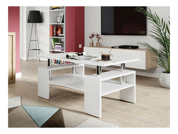 Konferenční stolek Taspin představuje moderní přístup k designu interiéru. Moderního vzhledu dosahuje díky chromovým akcentům a dodatečné polici. Polička vytváří dodatečný úložný prostor pro dálkový ovladače, knihy nebo sklenic a šálků. Konferenční stolek je k dispozici v několika barvách, které jistě harmonizují s vaší vizí místnosti. Nábytek je vyroben z kvalitních materiálů.