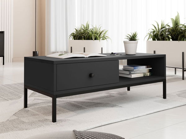 Konferenční stolek Tezarta 1SZ se šuplíkem skvěle doplní váš obývací prostor. S rohovou sedačkou nebo sedačkou jej musíte mít. Zde si můžete odložit knihu nebo brýle. Velká stolová deska vám umožní sestavit elegantní dekorativní displej. Moderní konferenční stolek je skvělým společníkem na kávu s přáteli nebo sledování televize. Bez problémů na ni vejdete také ovocný talíř nebo společenskou hru. Stolek Tezarta 1SZ má prostornou polici a prostornou zásuvku. Můžete ho nazvat mistrem organizace! Všechny věci, které potřebujete po ruce, můžete uložit na polici a do zásuvky uložit kabely, elektronická zařízení a další předměty.