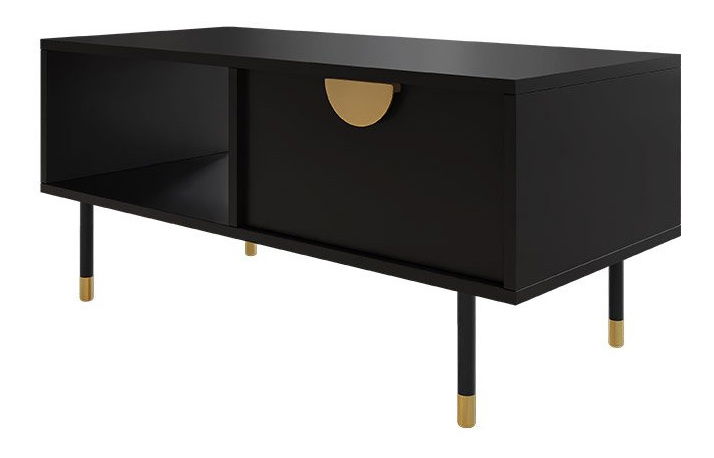 Konferenční stolek je ideální volbou pro ty, kteří hledají pohodlí a styl. Nezbytným doplňkem většiny stylových aranžmá se stane konferenční stolek Tevois 1K. Tento nenápadný model je ideálním podstavcem pro talíř s občerstvením nebo šálek kávy. Jeho zajímavý design vnese do interiéru nádech glamour elegance. Své dokonalé místo si najde také v moderních designech. Kromě vzhledu jsou dalšími přednostmi tohoto modelu kvalita a praktické zpracování. Konferenční stolek s poličkou umožňuje odložit věci, po kterých občas sáhnete. Předměty, které potřebujete mít po ruce, můžete umístit na otevřenou poličku pod horní deskou. Místo si tam najde dálkové ovládání televizoru, časopisy nebo knihy. Za pozornost stojí také vysoké nožičky se zlatou povrchovou úpravou. Skvělé řešení, díky kterému snadno udržíte pořádek na podlaze. Rozměry: šířka: 100 cm, výška: 48 cm, hloubka: 45 cm Provedení: korpus a čela: 16 mm silná laminovaná deska, ABS hrany a melamin, plynová láhev, kovové nožičky, úchyty z plastu ve zlaté barvě Záruka: 24 měsíců