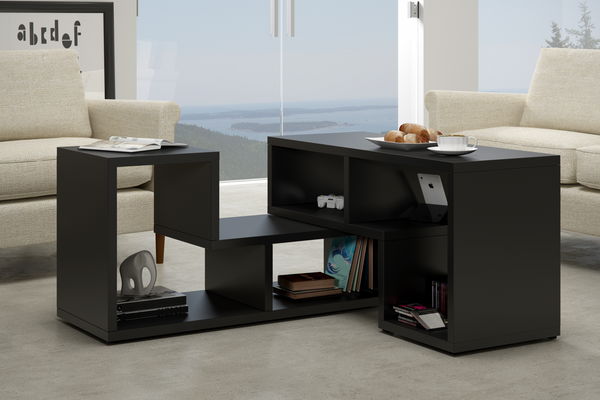 Unikátní a praktické řešení do obývacího pokoje vám poskytne konferenční stolek Top. V případě potřeby jej můžete přeskládat na regál nebo TV stolek. Konferenční stolek Top vám poskytne dostatek úložného prostoru. Barevné provedení stolku je černá barva.