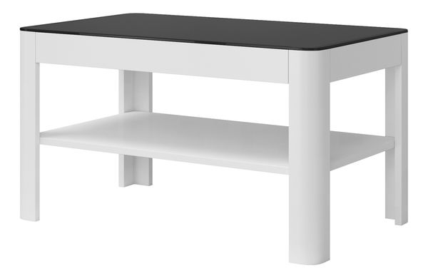 Konferenční stolek Toft s dolní poličkou v klasické černo bílé kombinací oceníte v obýváku iv kanceláří. Vrchní deska je z černého tvrzeného skla, které je bezpečné a působí elegantně. Laminované desky jsou odolné vůči poškrábání i slunečnímu záření.