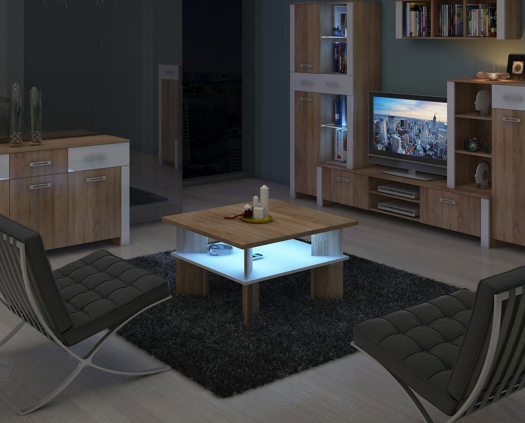 ZobrazitKonferenční stolek je praktickou součástí obývacího pokoje, pracovny či kanceláře. Na trhu s nábytkem je jich nespočet druhů. Ale konferenční stolky s LED osvětlením, ty jsou novinkou na trhu. Po setmění se naplno projeví. Volitelné LED osvětlení vypadá super a dodá nábytku a místnosti úžasný efekt. Konferenční stolek má i praktickou poličku, která slouží k odkládání novin, ovladače od TV, prostě věcí, které chcete mít vždy po ruce. Umístit jej můžete do obývacího pokoje, pracovny, kanceláře nebo ve vstupní hale. Barevné provedení je sonoma světlá v kombinaci s bílým vysokým leskem.