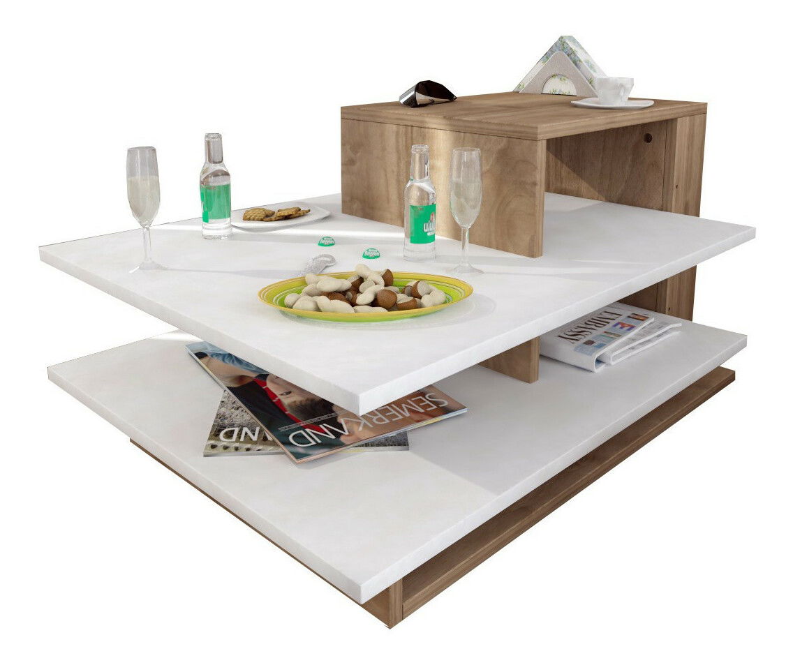 Konferenční stolek Veny je ideálním doplňkem pro moderní domácnost. Vysoká kvalita a praktický design dělají z tohoto stolku dokonalý kousek nábytku pro různé příležitosti. Výška 43,6 cm, šířka 84,8 cm a hloubka 60 cm dělají z tohoto stolku dostatečně velký kus nábytku pro uspořádání různých věcí. Materiál, ze kterého je stolek vyroben, je 100% melaminová deska, která zaručuje jeho odolnost a dlouhou životnost. Jednoduchý bílý a ořehový design přispívá k pocitu moderního a elegantního nábytku. Veny stolek vám umožní uspořádat vaše věci ve stylu as elegancí, která bude přispívat k celkovému vypadání vaší domácnosti.