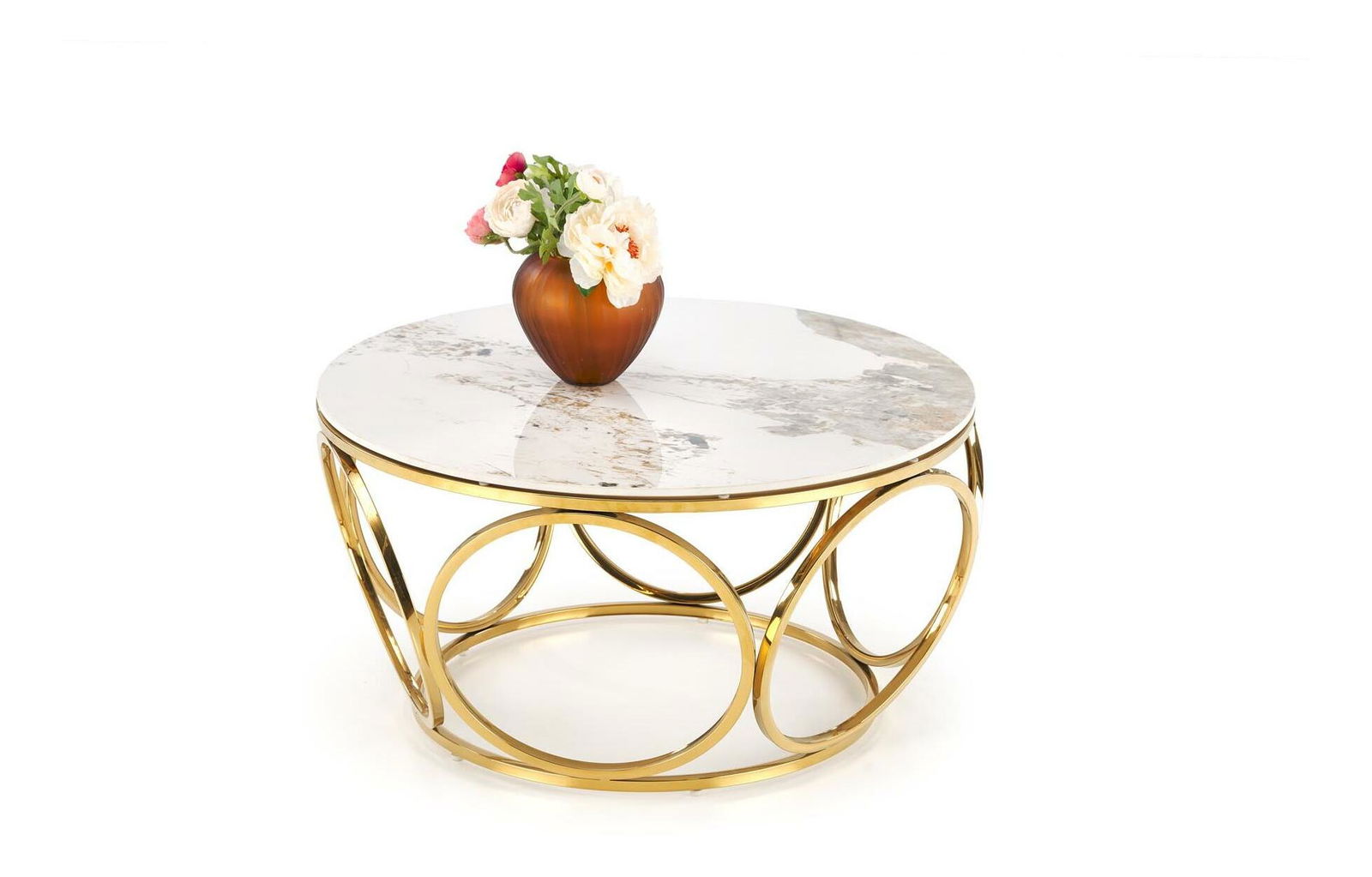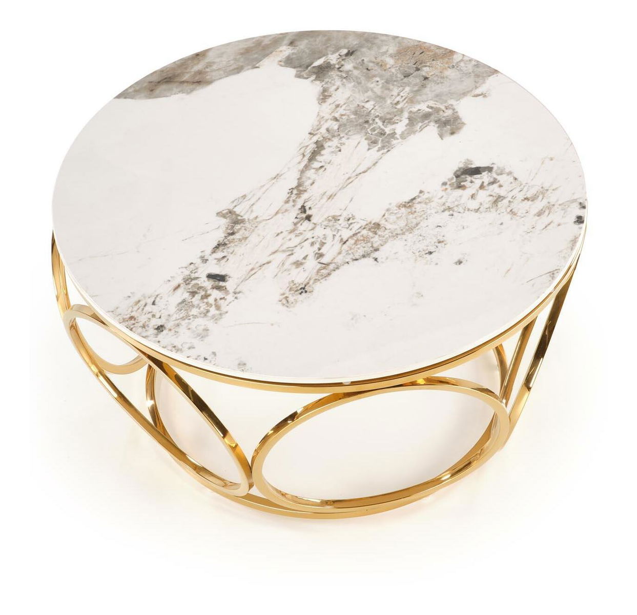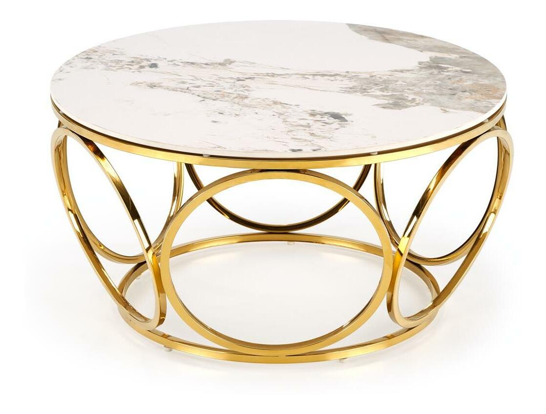 Konferenční stolek Viviana 2 (bílý mramor + zlatá)
