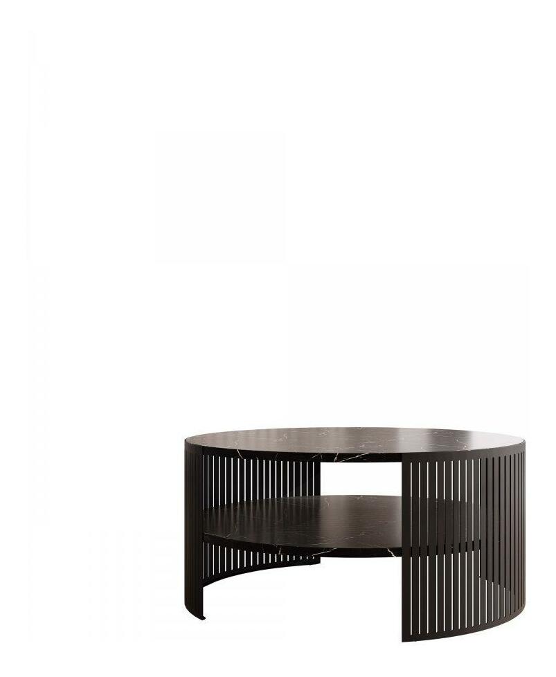 Kulatý konferenční stolek Zentono je elegantním návrhem do obývacího pokoje. Díky svému originálnímu designu podtrhne moderní charakter místnosti a dodá jí styl, třídu a funkčnost. Taková varianta umožní, aby snadno zapadla do různých stylových uspořádání, takže si můžete být jisti, že vám vydrží dlouhá léta. Konferenční stolek do obývacího pokoje byl dokončen jedinečnými dekorativními vložkami. Pomocí dvou vrchních desek máte spoustu dekorativních možností. Horní poslouží k nádhernému vystavení a odložení šálku kávy a talíře s ovocem, zatímco spodní se osvědčí jako další police na elektronická zařízení nebo knihy.