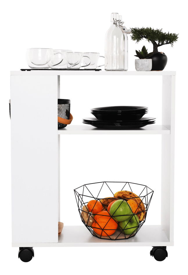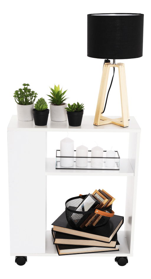 Proč si neudělat radost pěkným příručním stolkem? Příruční stolek Zorga skrývá v sobě mnohem více, než je vidět na první pohled. Přívlastek příruční nemá jen tak pro nic za nic. Má ty správné rozměry, aby poskytl i úložný či odkládací prostor a zároveň nepřekážel v prostoru. Díky kolečkům ho víte jednoduše přesouvat po místnosti, v případě potřeby i z jednoho pokoje do druhé. Bílou DTD snadno zkombinujete s ostatním nábytkem. Vnitřní prostor stolku je šikovně rozdělen policí, vrchní deska poslouží při servírování občerstvení, také jako odkládací plocha na knihy, dálkové ovladače, svíčky apod.
