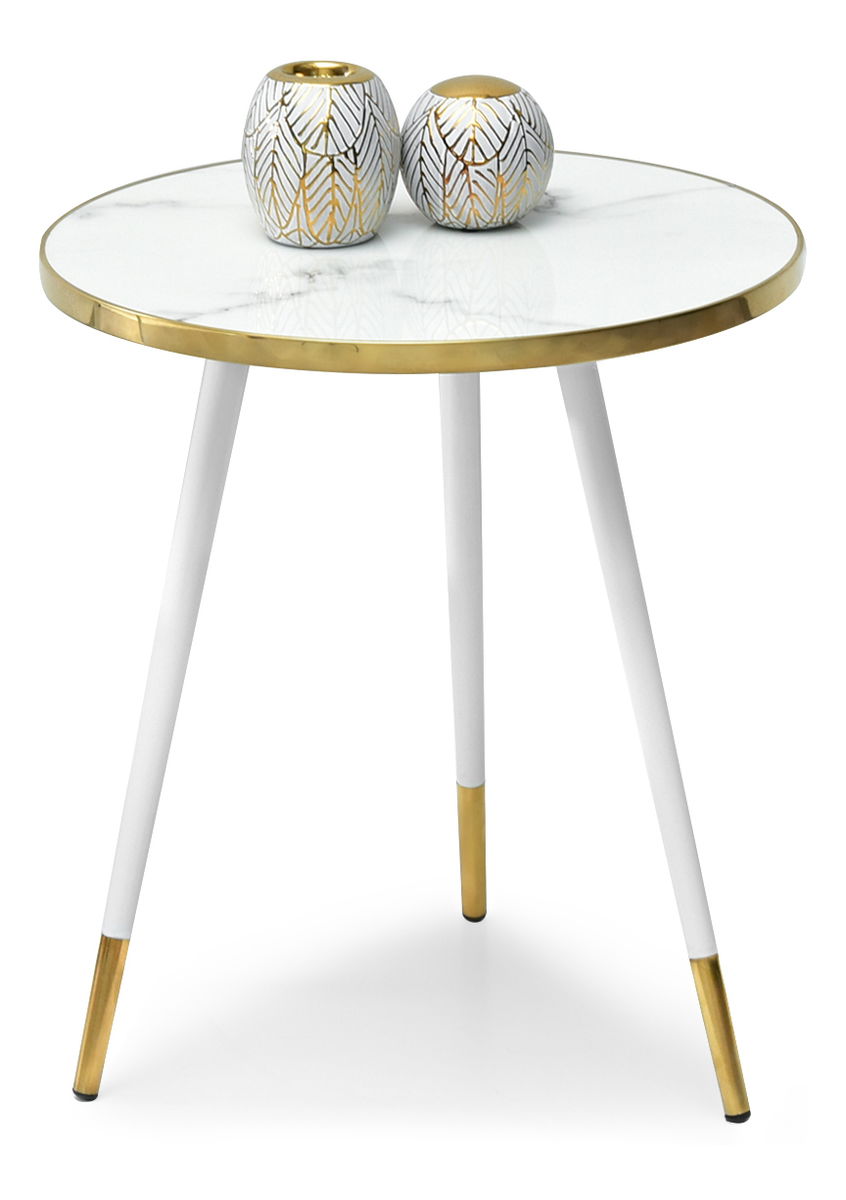 Konferenční stolek Zoya S (bílý mramor + zlatá)