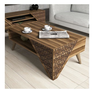 Dřevěné konferenční stolky lze také rozdělit na takové, které mají dolní poličku nebo jsou bez ní. Je to ovšem jen o vaší preferenci. Věci uložené v dolní poličce mají tendenci se hromadit a může to vyvolávat pocit nepořádku. Když ale poličku stolek nemá, ztrácíte praktický úložný prostor navíc. Jsou však také modely se zásuvkami nebo skrytou poličkou pod otočnou vrchní deskou, které řeší oba problémy.