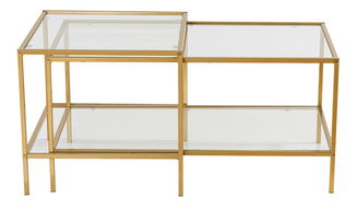 V případě, že na vás kovový stolek působí chladným dojmem, můžete si vybrat kombinaci se sklem, které dodá celému interiéru pocit noblesy. Počítejte ovšem s tím, že skleněná deska je náročnější na údržbu.