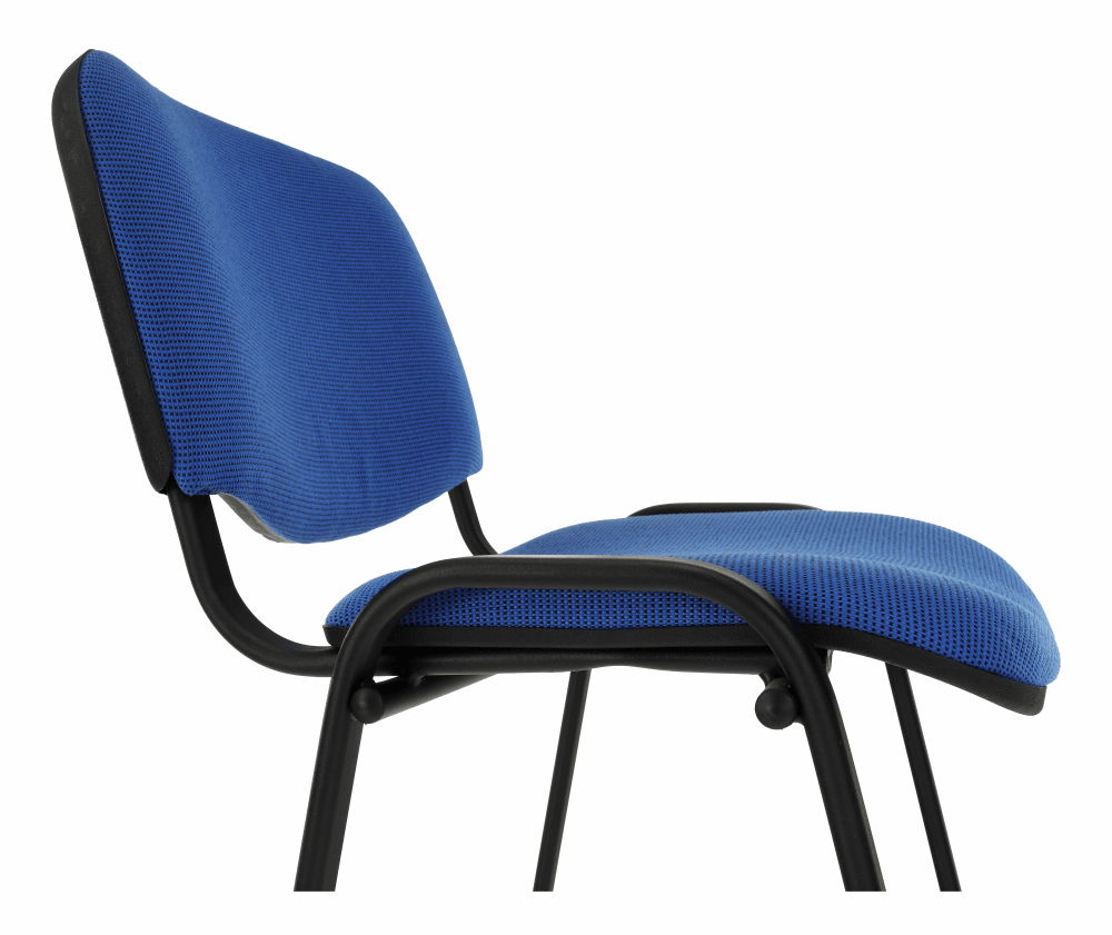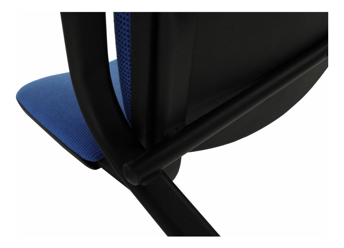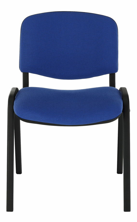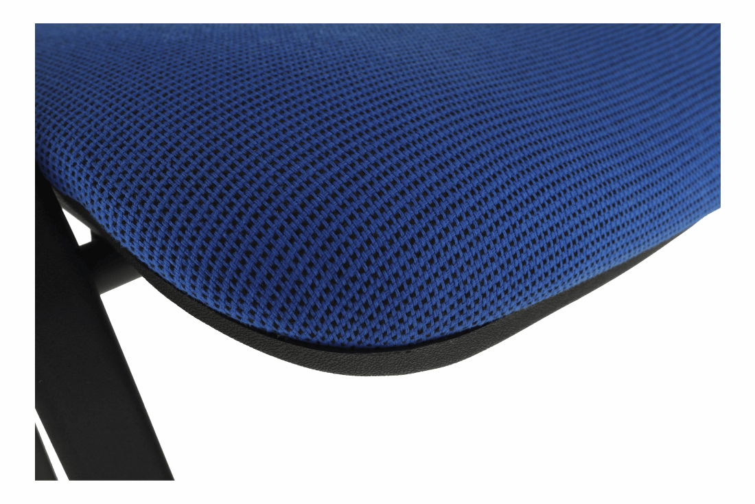Stohovatelná židle v černém provedení nožiček s modrým potahem