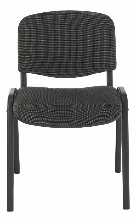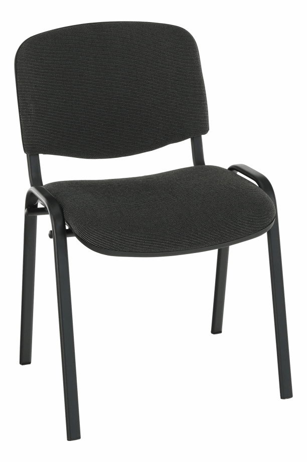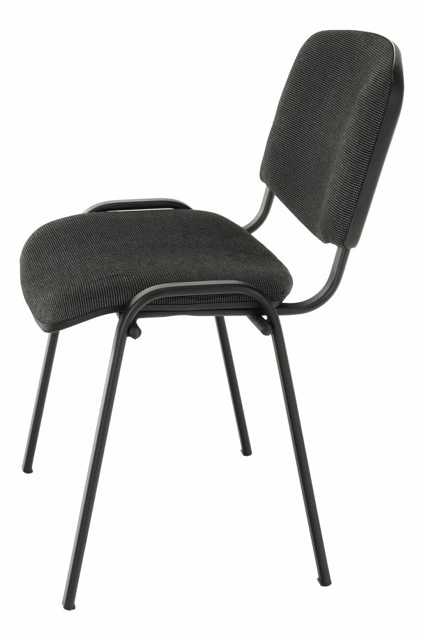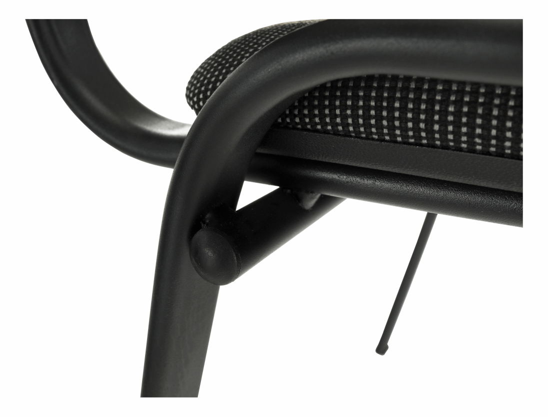Stohovatelná židle v černém provedení nožiček s šedým potahem