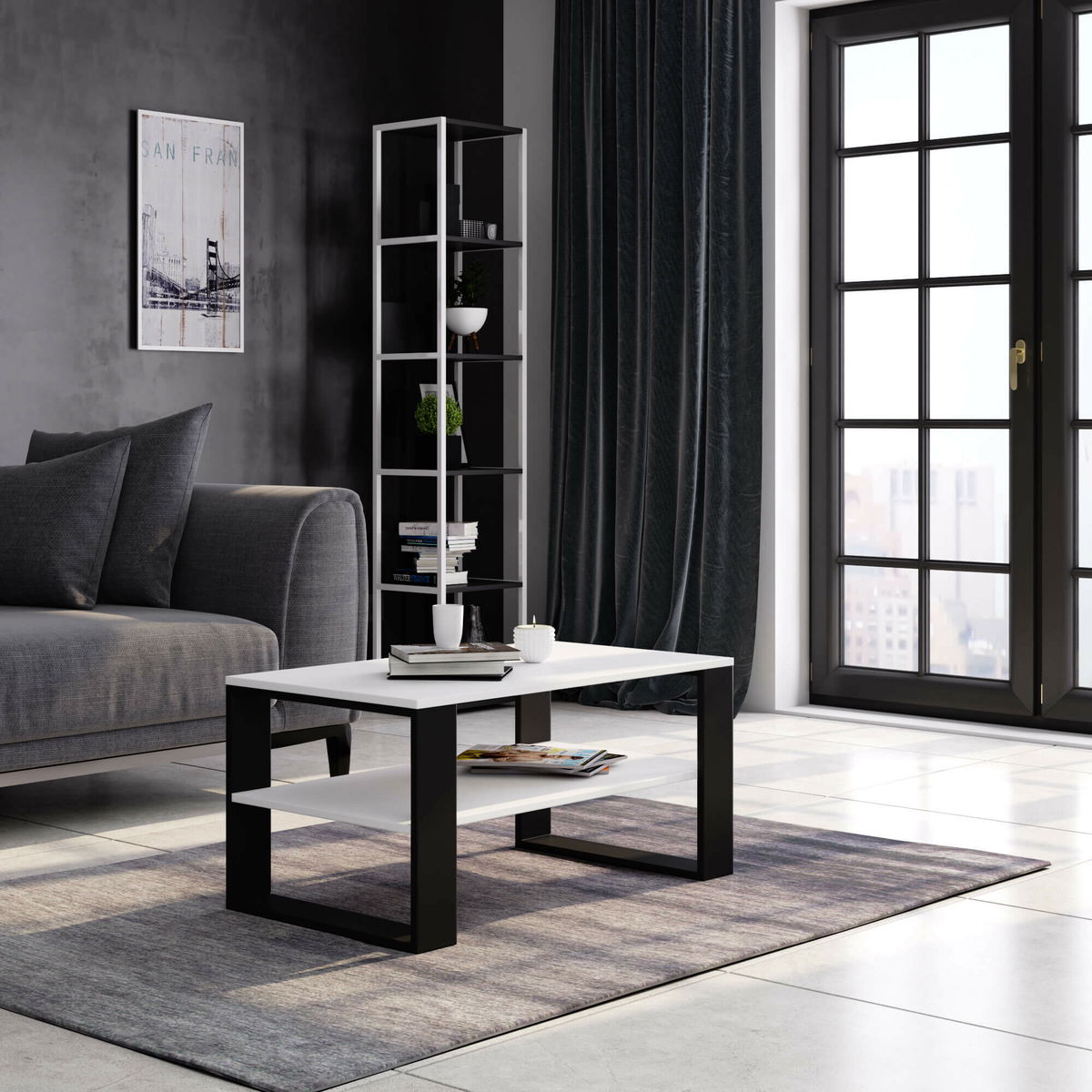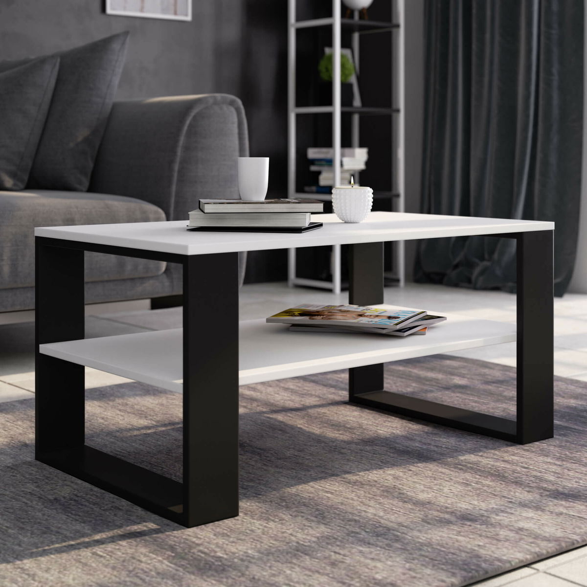 Konferenčný stolík Aislan (biela + čierna) *bazar