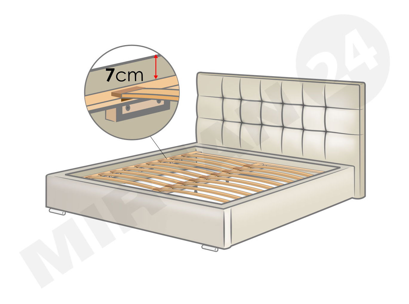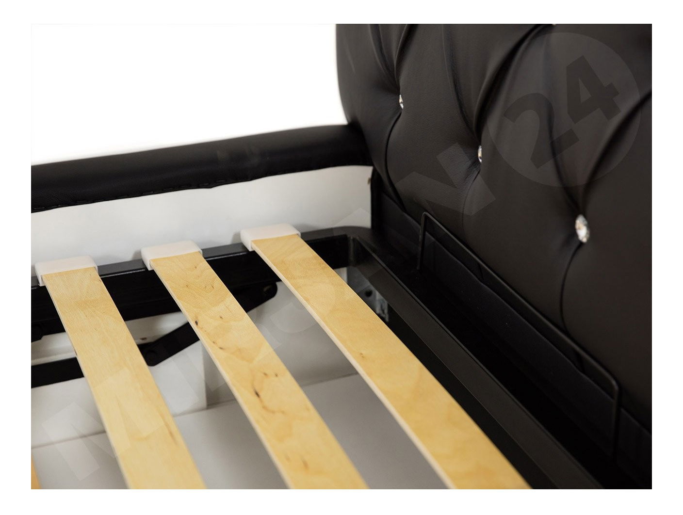 postel není volně stojící, záda jsou čalouněna silnější vláknitou tkaninou - fibertex