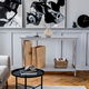 Moderní a vzdušný stolek, který poslouží svým úložným prostorem v obývacím pokoji, ložnici či předsíni.