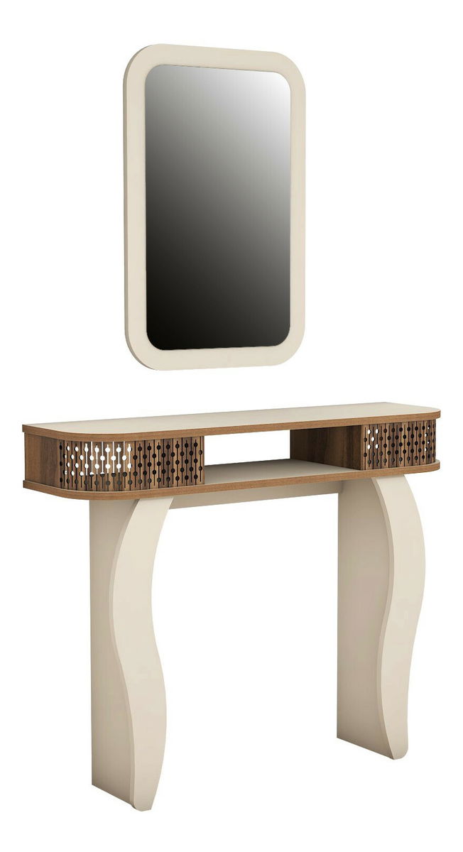ZobrazitKonzolový stolek - Daria (Krémová) je stylový a praktický nábytek pro váš domov. S výškou 85 cm, šířkou 105 cm a hloubkou 30 cm poskytuje dostatek místa pro uspořádání vašich věcí. Tento stolek je vyroben z kvalitního materiálu, což zaručuje jeho odolnost a dlouhou životnost. Jeho krémová barva přidává do vašeho interiéru elegantní a sofistikovaný vzhled. Stolek Daria je vhodný pro různé účely, jako je umístění dekorací, knih nebo drobností. Navíc jeho kompaktní rozměry umožňují umístění i v menších prostorách. S tímto konzolovým stolkem Daria získáte nejen praktický kousek nábytku, ale také stylový doplněk pro váš domov.