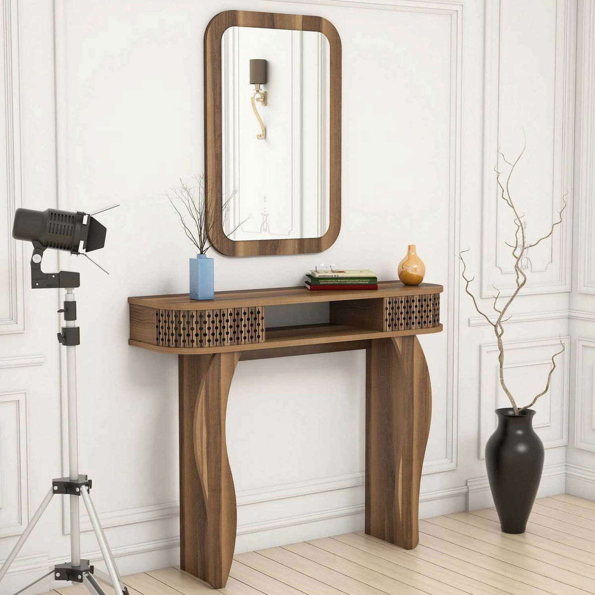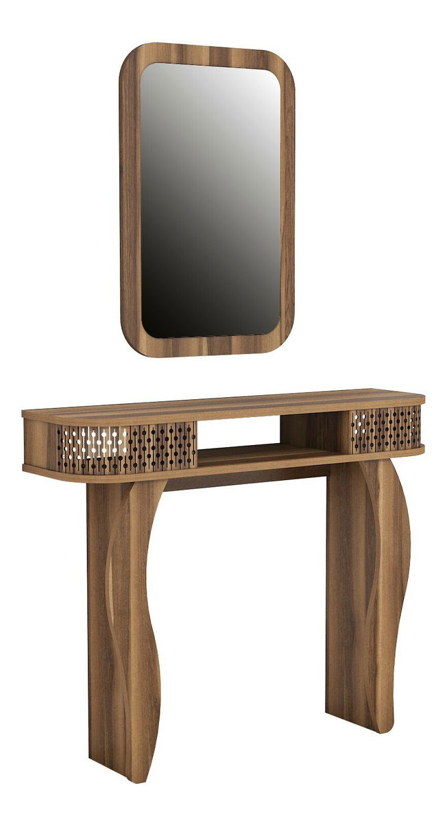ZobrazitKonzolový stolek - Daria (Ořech) je praktický a elegantní kus nábytku, který přinese styl do vašeho domova. S výškou 85 cm, šířkou 105 cm a hloubkou 30 cm je dostatečně velký pro umístění různých předmětů, jako jsou knihy, ozdoby nebo květiny. Jeho ořechový povrch přidává do interiéru teplý a přirozený vzhled. Konzolový stolek - Daria (Ořech) je vyroben z kvalitního materiálu, což zaručuje jeho odolnost a dlouhou životnost. Svojí jednoduchostí a vkusným designem se hodí do každého stylu interiéru a bude skvělým doplňkem vašeho domova.