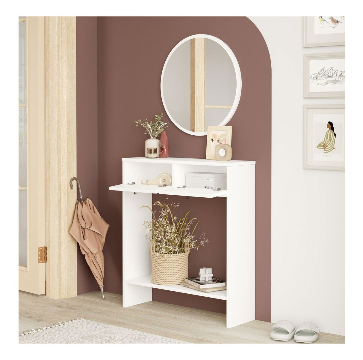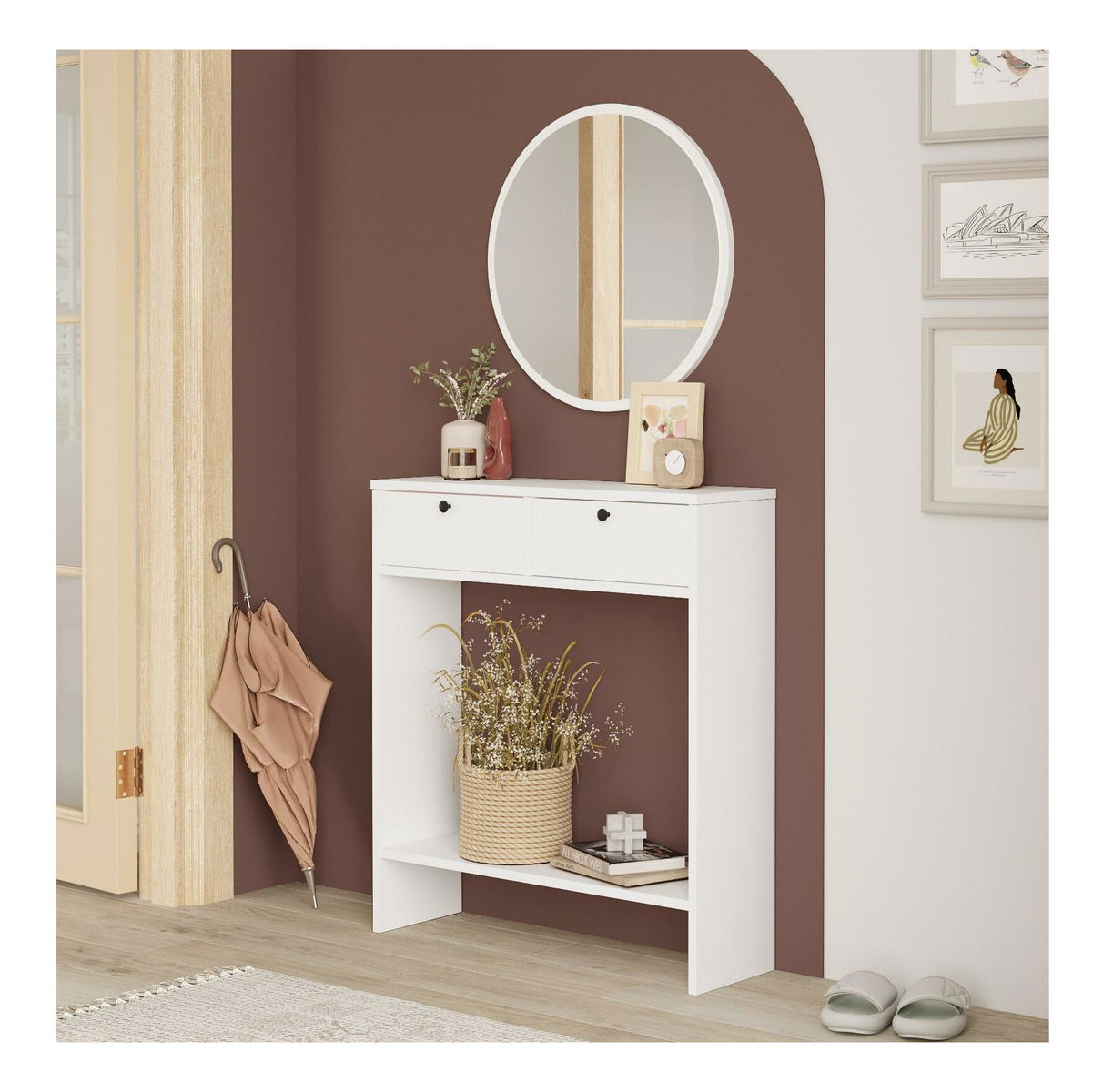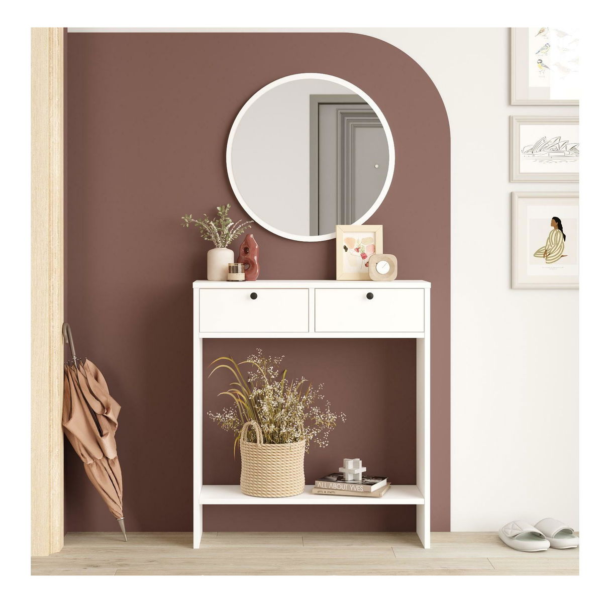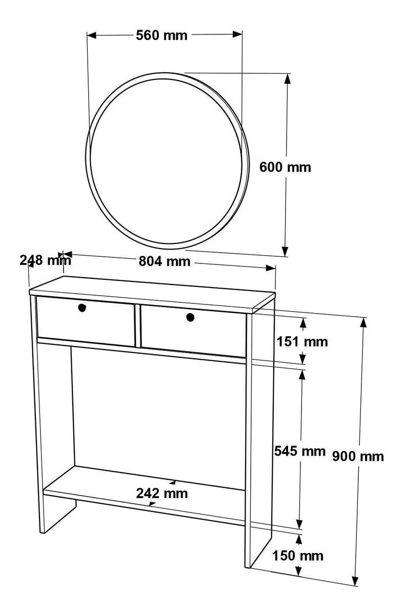 Konzolový stolek Lentorella 1 (se zrcadlem) (bílá + černá)