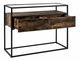 Zkrášlete váš domov tímto elegantním konzolovým stolkem v odstínu tmavého dřeva. Je skvělým doplňkem do obývacího pokoje, předsíně nebo ložnice a nabízí praktický úložný prostor v industriálním stylu. Stolek je navržen se dvěma hlubokými šuplíky, které jsou ideální pro uložení všech drobností, a skleněnou stolovou deskou, na které se bude krásně vyjímat stolní lampa nebo zarámované obrázky. Kovový rám zajišťuje stabilitu a doplňuje jednoduchý design stolku.