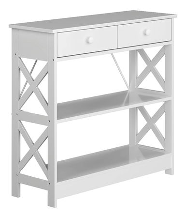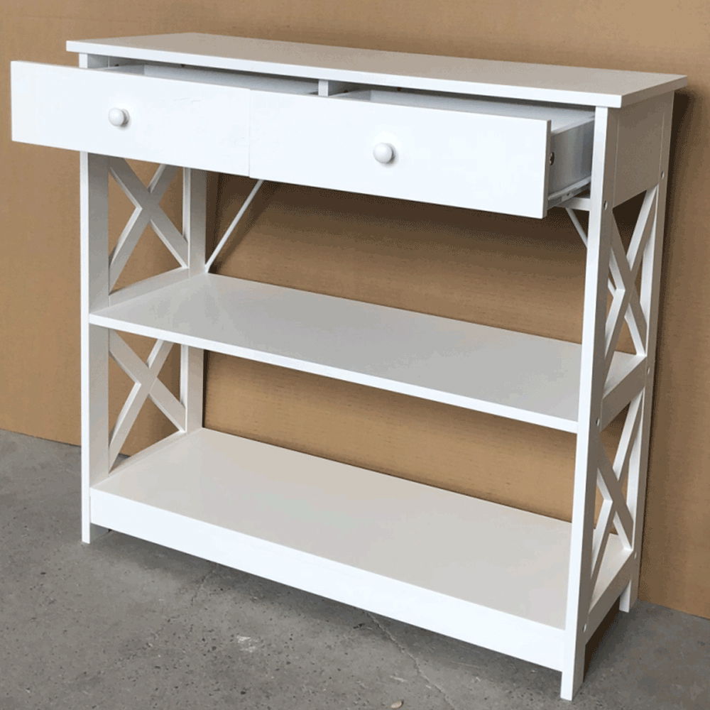 Praktickým pomocníkem v obývacím pokoji, ložnici či předsíni. Jeho minimalistický a zároveň venkovský design vynikne v místnosti. Do švech zásuvek se vejdou drobnosti, které chcete mít po ruce. Disponuje dvěma policemi.