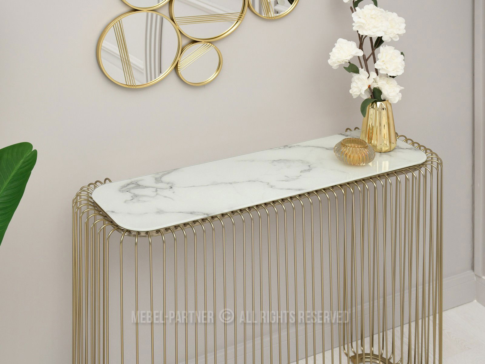 Konzolový stolek Nils Kons (bílý mramor + zlatá)