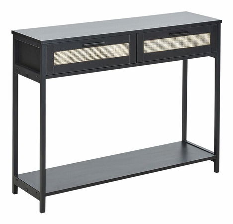 Tento konzolový stolek bude dokonalým doplňkem jakéhokoli prostoru, ať už jde o obývací pokoj, ložnici nebo předsíň. Dvě šuplíky nabízejí dostatečný úložný prostor na klíče, drobné doplňky, dokumenty či šperky. Tento kousek, podepřený robustníma nohama z kaučukového dřeva, ozdobený ratanovým výpletem a elegantními zlatými úchyty, bez problémů spojuje styl a funkčnost, čímž obohatí každý interiér.