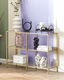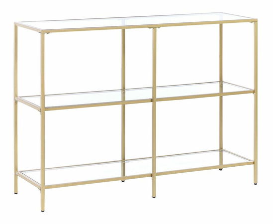 Tento obdélníkový konzolový stolek kombinuje minimalistický design a okouzlující vzhled. Je vyroben z vysoce kvalitního kovu s práškovou povrchovou úpravou a tvrzeného skla, je stabilní a dobře se kombinuje s mnoha styly. Dvě praktické police a vrchní část nabízejí dodatečný prostor pro vystavení dekorativních váz, figurek nebo svícnů.