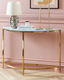 Osvěžte vzhled vašeho obývacího pokoje nebo chodby a dodejte jí eleganci s tímto stylovým konzolovým stolkem. Pevná lesklá konstrukce z nerezavějící oceli zajistí stabilitu a odolnost. Elegantní, jemně zaoblená stolová deska ze skla s matným 3D potiskem s mramorovým efektem působí opravdu efektně a vašemu interiéru dodá moderní nádech.