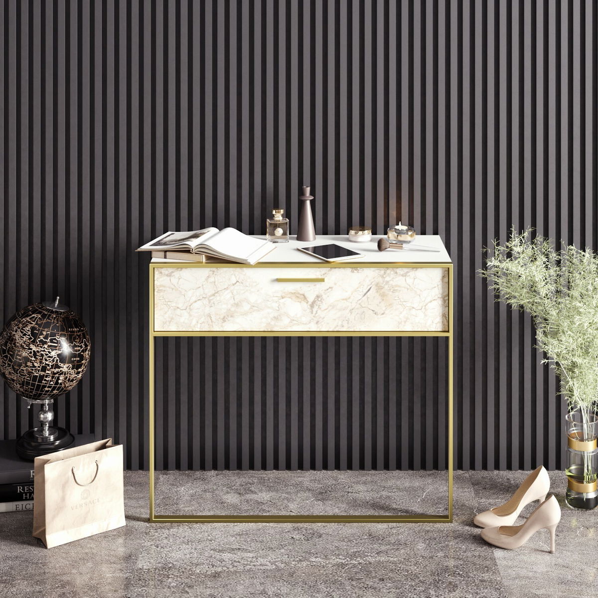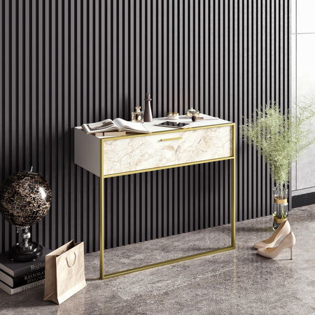 Konzolový stolek Poppy (Zlatá + Bílá)