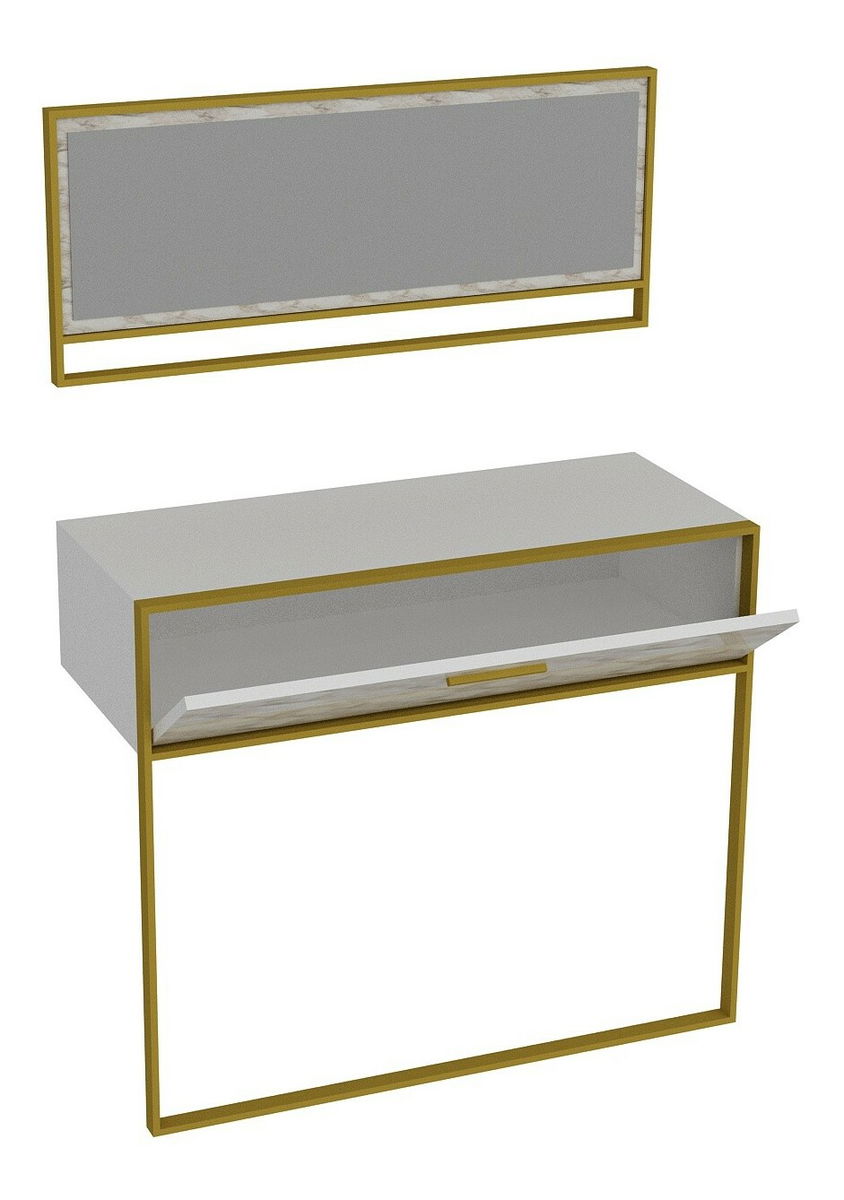 Konzolový stolek Poppy (Zlatá + Bílá) (se zrcadlem)