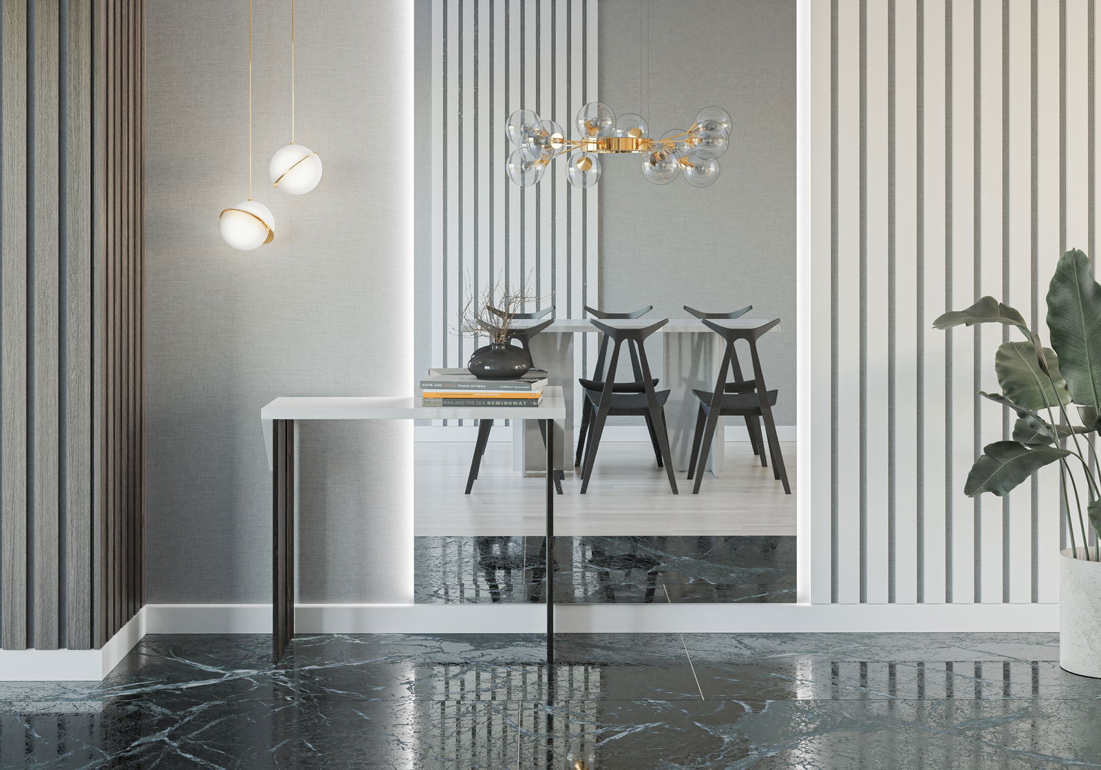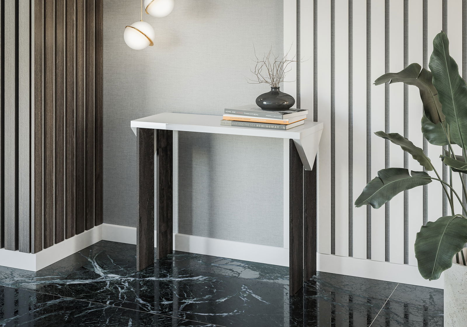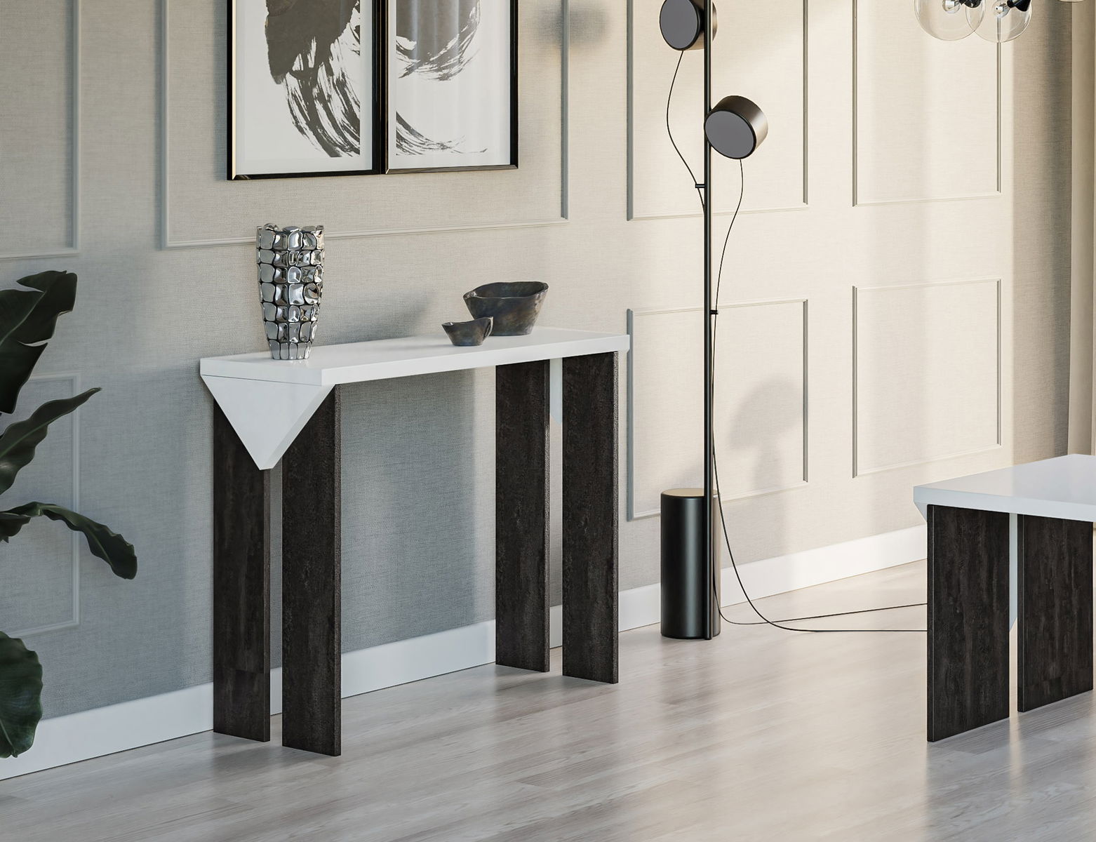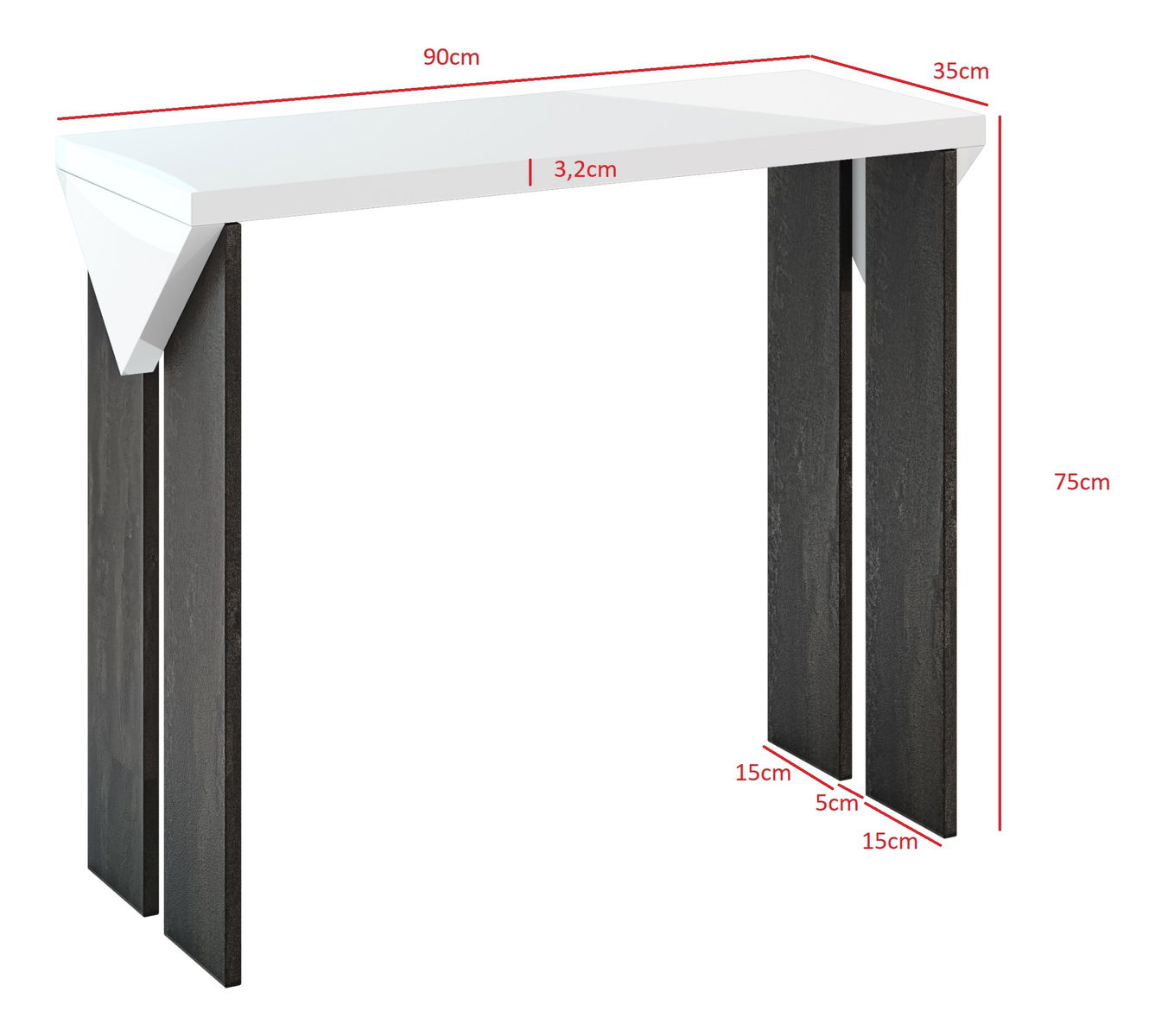 Konzolový stolek Tarni (lesk bílý + tmavě šedá)
