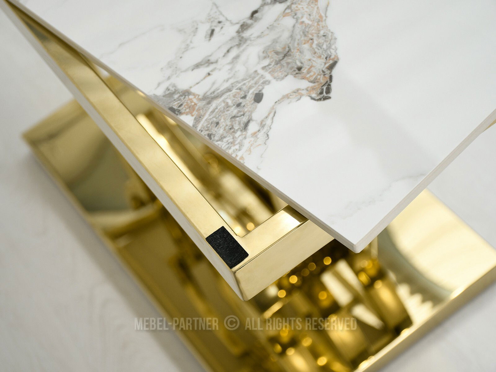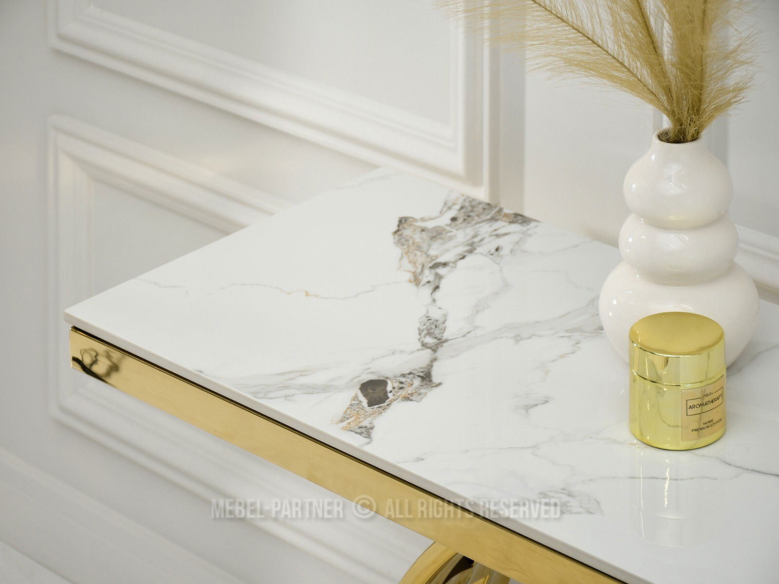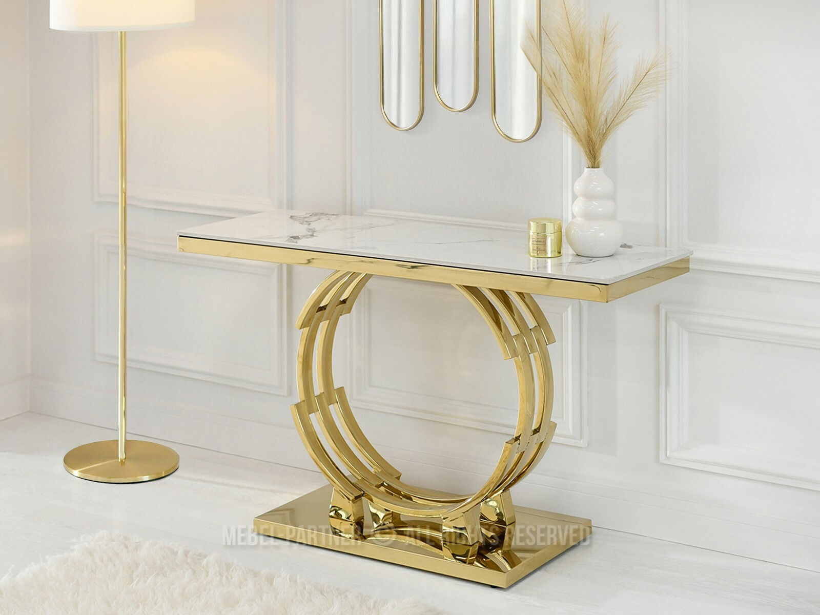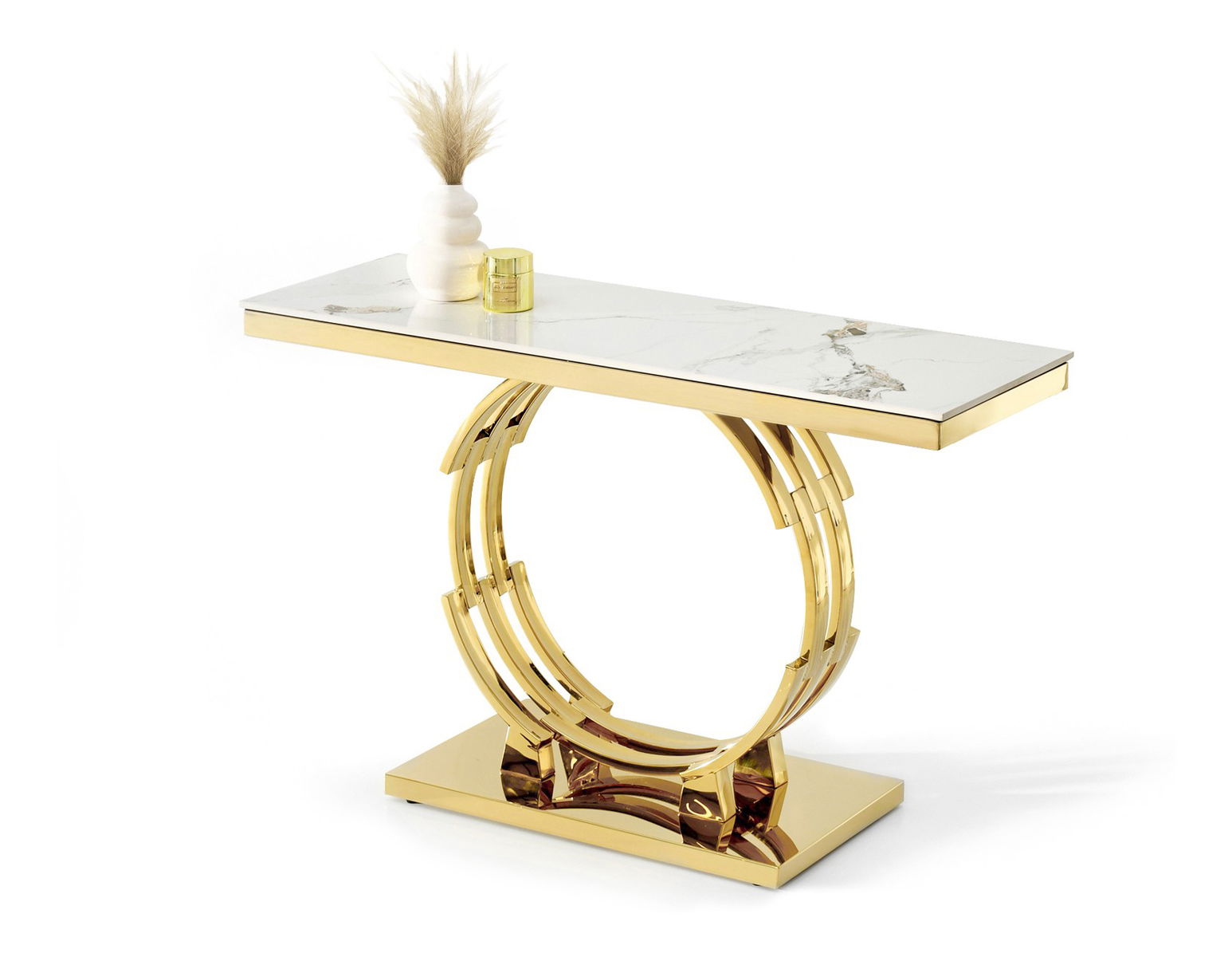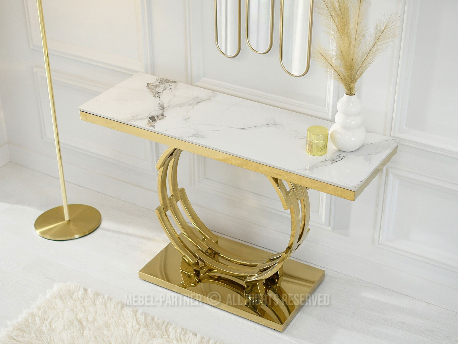 Konzolový stolek Tess (bílý mramor + zlatá)