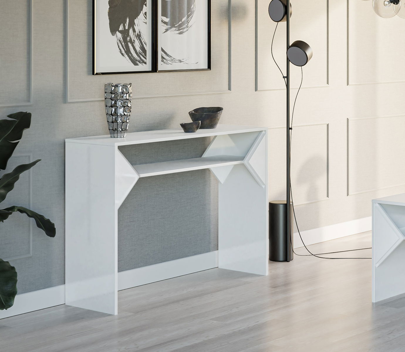 ZobrazitKonzolový stolek Tonfir v lesk bílém provedení je praktickým doplňkem pro váš interiér. S rozměry 110 x 35 cm a výškou 80 cm poskytuje dostatek místa pro umístění různých předmětů. Jeho moderní design s lesklým povrchem vytváří elegantní atmosféru v místnosti a stolek je vhodný pro různé účely, jako například umístění květinových váz nebo dekorativních předmětů. Konzolový stolek Tonfir je vyroben z kvalitního materiálu, který zaručuje dlouhou životnost a snadné čištění. Tento stolek je skvělou volbou pro ty, kteří hledají stylový a praktický nábytek pro svůj domov.