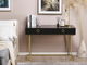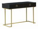 Tento jedinečný kus nábytku je dekorativním a praktickým doplňkem do vašeho obývacího pokoje, ložnice nebo chodby. Konzolový stolek vyniká svým geometrickým tvarem a moderním stylem. Díky kombinaci MDF materiálu, matné povrchové úpravy a zlatých kovových nohou působí velmi elegantně. Stolek má také dvě zásuvky, takže jej můžete využít i jako toaletní stolek nebo stylový psací stůl.
