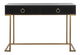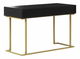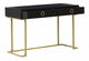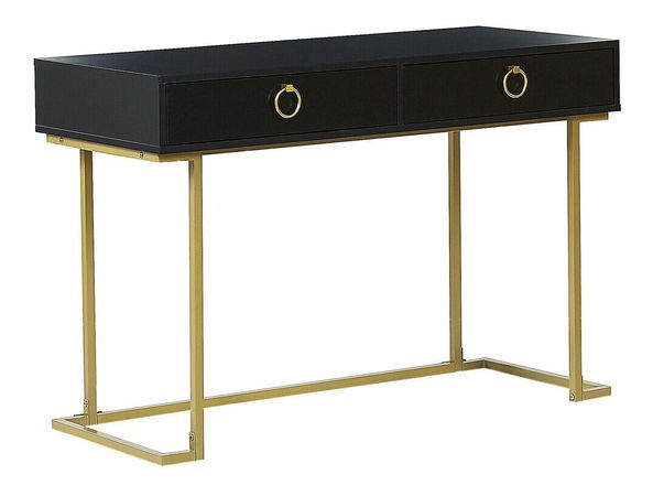 Tento jedinečný kus nábytku je dekorativním a praktickým doplňkem do vašeho obývacího pokoje, ložnice nebo chodby. Konzolový stolek vyniká svým geometrickým tvarem a moderním stylem. Díky kombinaci MDF materiálu, matné povrchové úpravy a zlatých kovových nohou působí velmi elegantně. Stolek má také dvě zásuvky, takže jej můžete využít i jako toaletní stolek nebo stylový psací stůl.