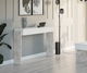 Konzolový stolek Zantra (bílá + kámen) je moderní a elegantní nábytek, který dodá každé místnosti stylový nádech. Je vyroben z kvalitních materiálů, které zaručují jeho pevnost a odolnost. Stolek má výšku 80 cm, šířku 110 cm a hloubku 35 cm, což z něj činí ideální kousek nábytku pro obývací pokoj nebo předsíň. Bílá barva dodává stolku svěží a čistý vzhled, kamenová deska na vrchu stolku dodává dojem elegance a luxusu. Konzolový stolek Zantra je praktický a funkční kousek nábytku, který si oblíbí všichni milovníci moderního designu.