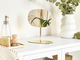 Díky tomuto zlatému kosmetickému zrcadlu bude dokonalé nanesení make-upu úplná hračka. Díky otočnému designu jej lze nastavit do požadovaného úhlu. Design bez rámu doplněný zlatým podstavcem vypadá velmi elegantně a výborně doplní vaši koupelnu, obývací pokoj nebo ložnici.
