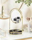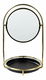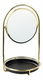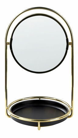 Toto oboustranné kosmetické zrcadlo se stane skvělým doplňkem vašeho kosmetického koutku. Díky jeho velikosti jej lze umístit i na malý toaletní stolek nebo komodu. Praktická spodní část vám poslouží k odkládání šperků a jiných drobností. Díky zlatému barevnému provedení jej lze jednoduše zkombinovat s různými styly zařízení, ale nejlépe vynikne v prostorách zařízených v moderním a elegantním stylu.