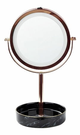 Kosmetické zrcadlo by nemělo chybět v žádném kosmetickém koutku. Toto zrcadlo má řadu praktických funkcí. Je vybaveno LED osvětlením, které vám usnadní každodenní líčení, je oboustranné a jedna ze stran má zvětšovací sklo. Spodní část podstavce nabízí úložný prostor, který využijete k odkládání doplňků a šperků. Je vyrobeno z odolného skla a keramiky, díky čemuž je trvanlivé a nenáročné na údržbu.