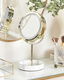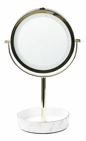 Kosmetické zrcadlo by nemělo chybět v žádném kosmetickém koutku. Toto zrcadlo má řadu praktických funkcí. Je vybaveno LED osvětlením, které vám usnadní každodenní líčení, je oboustranné a jedna ze stran má zvětšovací sklo. Spodní část podstavce nabízí úložný prostor, který využijete k odkládání doplňků a šperků. Je vyrobeno z odolného skla a keramiky, díky čemuž je trvanlivé a nenáročné na údržbu.