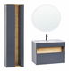 Najděte si místo pro každý doplněk, kosmetiku a ručník ve vaší koupelně s touto funkční nábytkovou soupravou. Skládá se z vysoké skříňky, závěsného umyvadla a zrcadla a je skvělým úložným řešením. Závěsná jednotka obsahuje dvě skryté skříňky a šest otevřených přihrádek vybavených policemi z čirého skla, které jsou ideální pro vystavení věcí, jako jsou parfémy nebo svíčky. Kromě toho je vybavena dvěma držáky na ručníky na boku. Skříňka pod umyvadlo se dodává s keramickým umyvadlem na vrchu, které je vhodné pro použití s jednou pákovou baterií. K dispozici je také otevřená police a prostorná zásuvka, do které se vejde vysoušeč vlasů nebo další ručníky. Celou sestavu doplňuje kulaté LED zrcadlo, ovládané dotykovým spínačem.