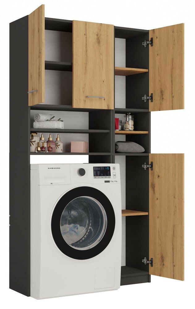 ZobrazitKoupelnová sestava Molinos 1 v elegantní kombinaci antracit a dub artisan nabízí praktické řešení pro každou koupelnu. S jejím minimalistickým designem a kvalitním zpracováním z laminované dřevotřísky se stane nejen funkčním, ale také stylovým doplňkem vašeho interiéru. S úložným prostorem pro praní a dostatečnou šířkou pro umístění pračky, tato sestava efektivně zorganizuje váš prostor bez zbytečného zabírání místa. Díky možnosti volby strany otevírání dveří se přizpůsobí vašim potřebám.