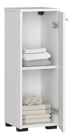 ZobrazitStojící koupelnová skříňka je ve své jednoduchosti velmi praktický a elegantní kus nábytku. Díky malým rozměrům najde uplatnění i v malých koupelnách. Do prostorných polic skříňky se vejdou ručníky, čistící prostředky nebo náhradní mýdla či kosmetika. Vrch skříňky, umístěný v pohodlné výšce, lze použít pro každodenní kosmetiku a parfémy. Skříňka je vyrobena z laminované desky, která je odolná vůči vlhkosti a oděru. Nábytek je dokončen odolnou a nebarvivou melaminovou dýhou. Skříňku můžete mýt tak často, jak chcete, bez obav z poškození jejího povrchu. Stojící koupelnová skříňka se hodí jak do koupelen se světlými a tmavými obklady, tak do klasických a retro koupelen s pozlaceným kováním. Nábytek v kombinaci s umyvadlovou skříňkou ze stejné kolekce bude vizuálně a funkčně atraktivním zařízením koupelny. Dostupná ve více barevných provedeních.