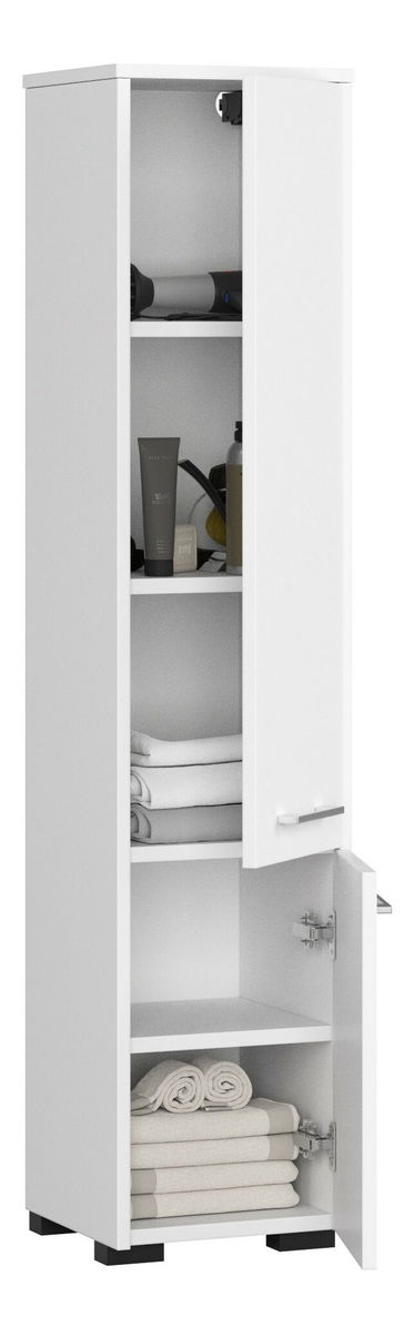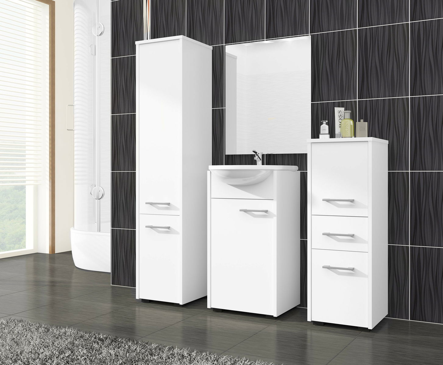ZobrazitStojící koupelnová skříňka je ve své jednoduchosti velmi praktický a elegantní kus nábytku. Díky malým rozměrům najde uplatnění i v malých koupelnách. Do prostorných polic skříňky se vejdou ručníky, čistící prostředky nebo náhradní mýdla či kosmetika. Skříňka je vyrobena z laminované desky o tloušťce 16 mm, která je odolná vůči vlhkosti a oděru. Nábytek je dokončen odolnou a nebarvivou melaminovou dýhou. Skříňku můžete mýt tak často, jak chcete, bez obav z poškození jejího povrchu. Stojící koupelnová skříňka se hodí jak do koupelen se světlými a tmavými obklady, tak do klasických a retro koupelen s pozlaceným kováním. Nábytek v kombinaci s umyvadlovou skříňkou ze stejné kolekce bude vizuálně a funkčně atraktivním zařízením koupelny. Dostupná ve více barevných provedeních.