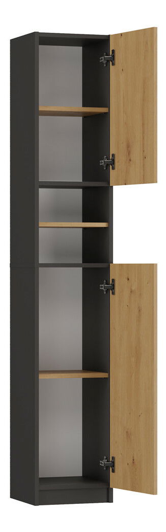 ZobrazitKoupelnová skříňka Maestra 5 v elegantní kombinaci antracit a dub artisan je ideálním řešením pro každou moderní koupelnu. Její minimalistický design a praktické rozměry (šířka 32 cm, hloubka 30 cm a výška 180 cm) umožňují efektivní využití prostoru bez zbytečného přeplnění. Skříňka je vybavena pohodlnými plastovými úchyty ve stříbrné barvě, které zajišťují snadný přístup k obsahu. S možností volby strany otevírání dveří a kvalitním zpracováním, Maestra 5 představuje dokonalou kombinaci funkčnosti a estetiky pro vaši koupelnu.