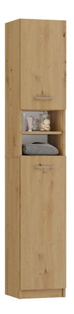 ZobrazitKoupelnová skříňka Maestra 5 v elegantní barvě dub artisan je ideálním řešením pro každou moderní koupelnu, kde je zapotřebí efektivně uspořádat prostor. S praktickým designem a minimalistickými plastovými úchyty nabízí pohodlný přístup k obsahu, přičemž její kompaktní rozměry (šířka 32 cm, hloubka 30 cm a výška 180 cm) zajišťují, že nezabere mnoho místa. Skříňka je vyrobena z kvalitní laminované dřevotřísky, což zaručuje její dlouhou životnost a snadnou údržbu. S Maestra 5 si můžete vytvořit harmonický a stylový prostor ve vaší koupelně.