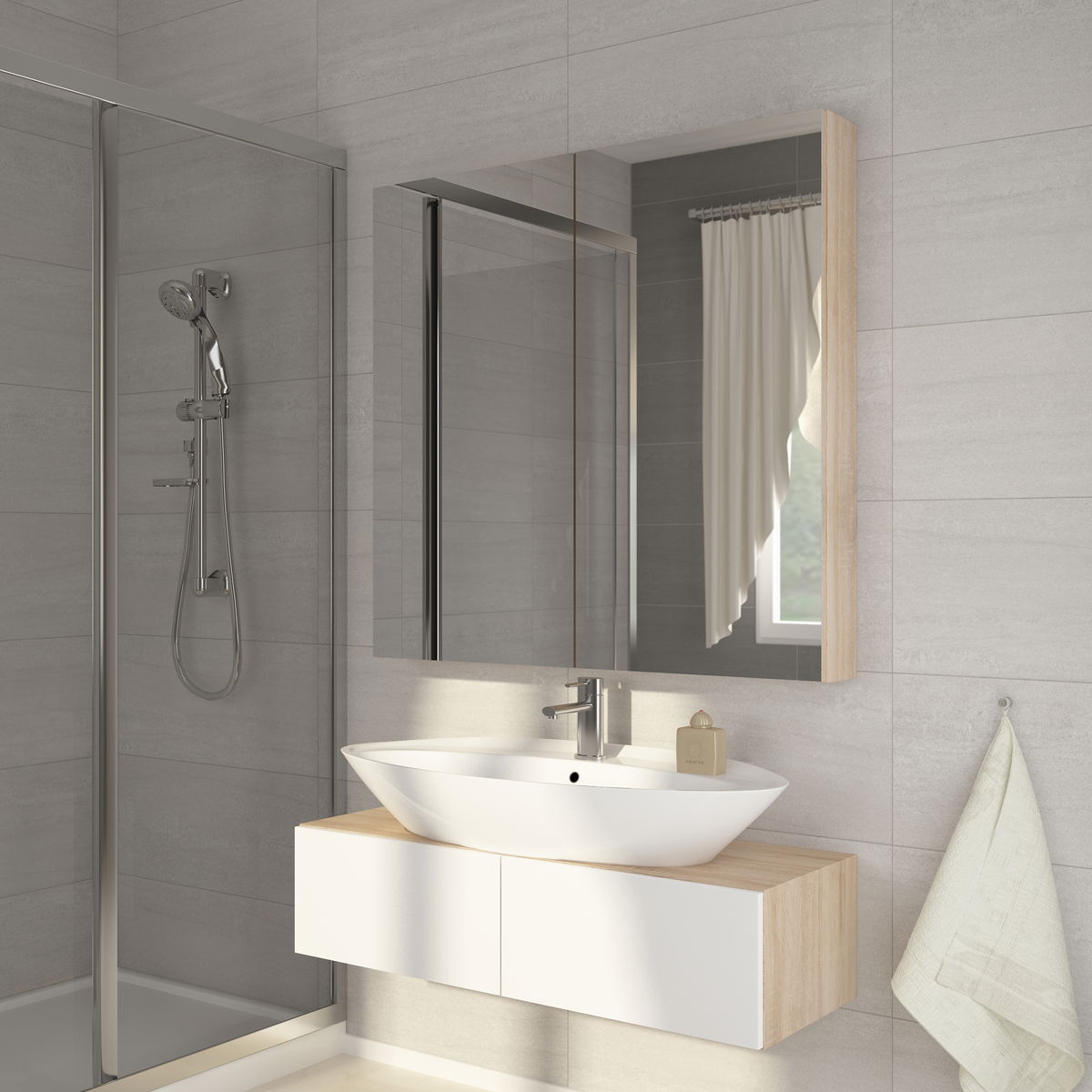 Koupelnová skříňka na stěnu Delia 100 dub sonoma světlý + zrcadlo