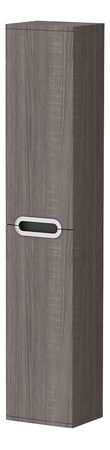 Vysoká a úzká závěsná skříňka na stěnu s moderním designem, která disponuje dostatkem úložného prostoru pro osušky, kosmetické přípravky a další drobnosti, bez kterých se v koupelně neobejdete. Skříňka má dvoje dvířka a uvnitř se nacházejí police. Funkční design je vyjádřen v precizním zpracování a v originálních oválných vyřezávaných úchytech. Otočením skříňky o 180 stupňů dosáhnete levé a pravé otevírání dvířek.