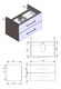 Závěsná skříňka na stěnu s umyvadlem. Skříňka má dvě zásuvky s podlouhlým kovovým úchytem. Praktická zejména pro kosmetiku, ručníky, fén, nebo kulmu na vlasy.